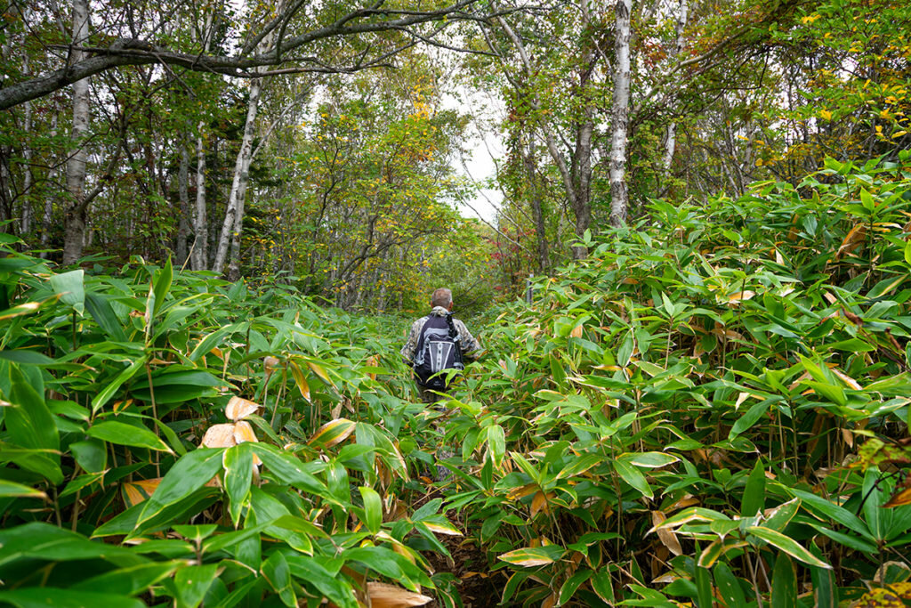 Необычная флора – это то, что поразило нас в первые же минуты пребывания на Кунашире. Весь остров, словно одет в зеленую шубу, покрыт густыми зарослями бамбучника (Sasa kurilensis), не путать с бамбуком, это разные растения. Вся зелень на фотографиях — это не трава, как многие могут подумать, это бамбучник! Пройти через его заросли, если нет тропы, человеку крайне сложно. А потому в какой-то степени бамбучник является естественной защитой природы острова от людей. И при этом – это отличное укрытие для мелких грызунов и птиц.