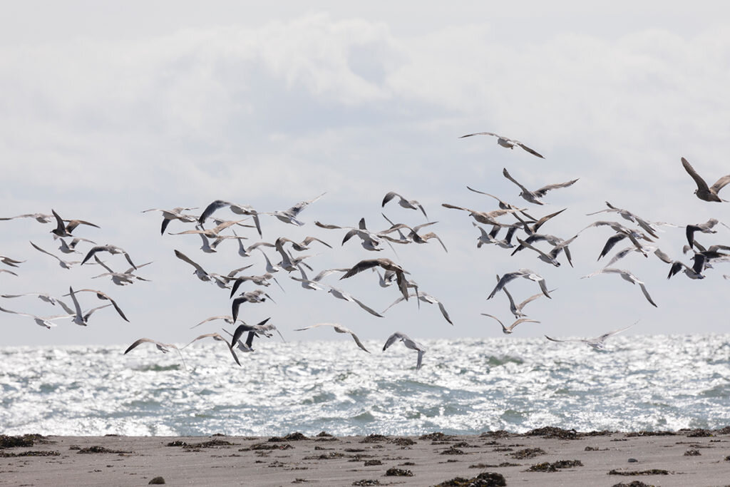 Пока еще было светло, решили пройти по берегу океана в сторону реки Саратовки. На берегу, как и положено, множество чаек. Завидев нас, они лениво взлетают и тут же дружно приземляются. Вроде как политесс соблюден, они показали, что нас увидели, но коли мы не принесем им никакого вреда, то и улетать незачем.