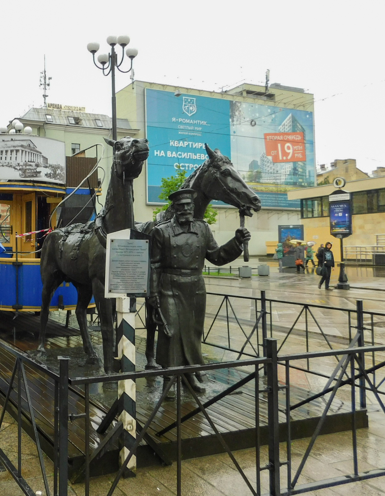 Отправление первой конки в Санкт-Петербурге было с этого самого места на Васильевском острове, где сейчас стоит этот памятник.