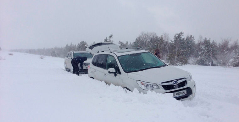 За несколько дней изучив прогноз погоды, решили с друзьями поехать на гору Ай-Петри, по снегу погулять, покататься да шашлычком побаловаться. Выезд наметили в воскресенье в 9 утра. По прогнозу в Ялте +6 С° и дождь, на Ай-Петри –4 С° и снег. А тут такой сюрприз: с утра вот и в Ялту пришла зима. Проснулся утром в окно посмотрел и обалдел: мухи белые летают, и так много, на градуснике 0 С°, и валит снег. Планы, конечно, не стали менять и по намеченному графику начали подъем на Ай-Петри. В составе делегации «Субару Форестер» и «Субару Аутбэк». Трасса была достаточно интересной, около 20–25 см снега, мороз, не скользко. Подъем был небыстрый, так как постоянно упирались и по возможности объезжали другие машины, если нас пропускали.