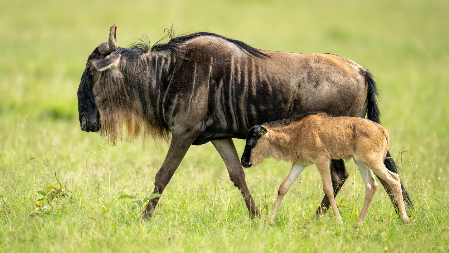 Апогей годового цикла — массовый отел в феврале или марте. За несколько недель рождается до 250 000 телят (иногда по 8000 в день!). Новорожденный встает на ножки уже через три–семь минут и через пару часов способен бежать со стадом. Но тут же подстерегают хищники, поэтому выживает около половины малышей.