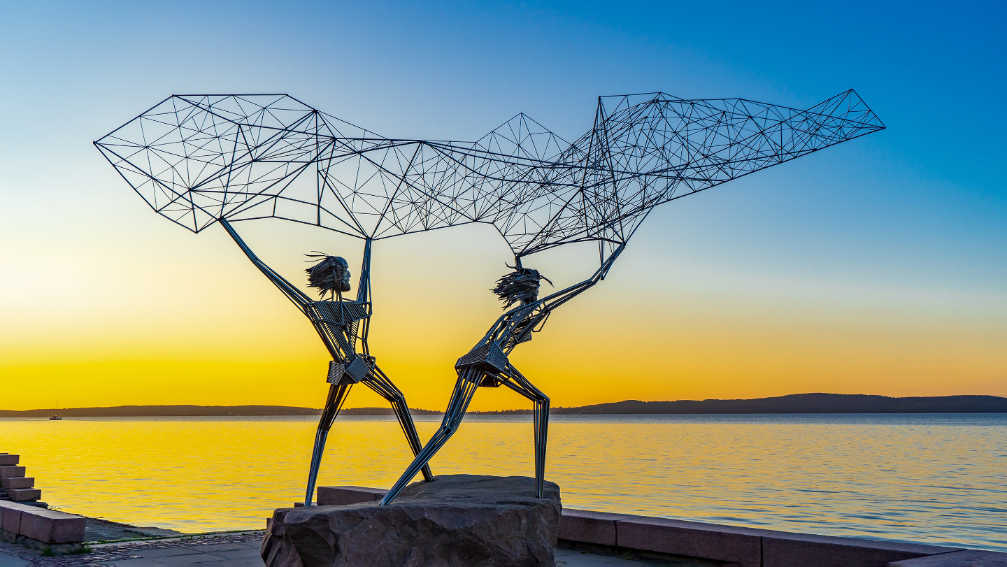 Зачем ехать. В Петрозаводске во время белых ночей особенно интересно гулять по набережной Онежского озера. В это время проходит ежегодный ландшафтный фестиваль «Созвучие белых ночей», когда скульпторы выставляют свои творения из дерева или карельского гранита. Полюбовавшись работами, можно прогуляться на каяках и встретить рассвет над Онежским озером.