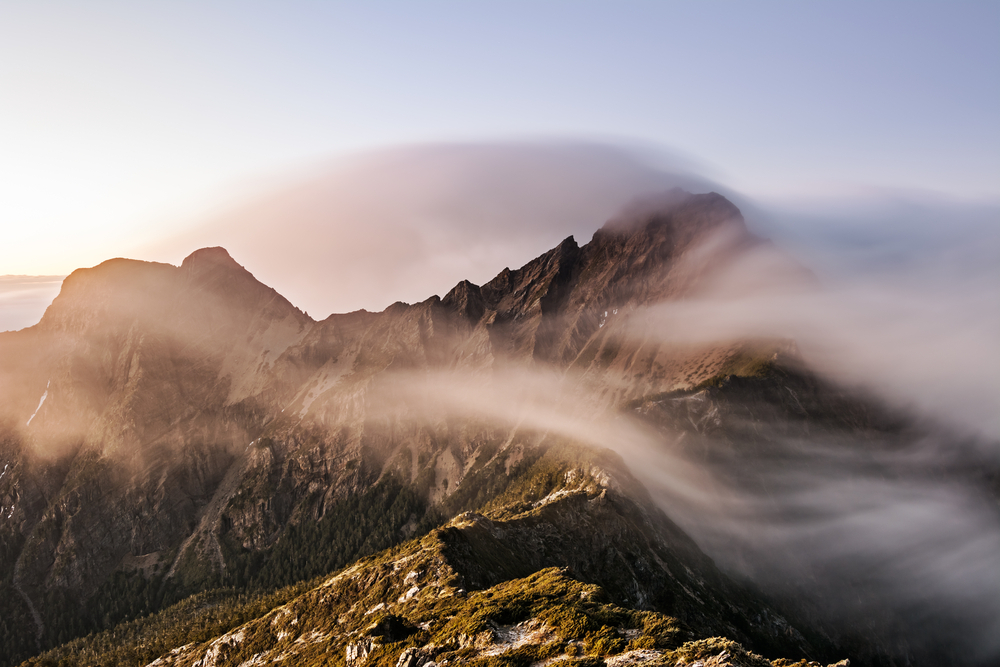 - появление облаков над гребнем горного хребта.