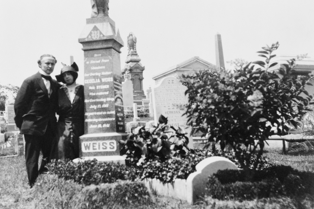 А через год она умерла. Гарри уезжал на гастроли в Гамбург и все никак не мог разжать руки, обнимая мать. Она попросила его привезти меховые тапочки. Едва он приступил к репетициям, пришла телеграмма, что миссис Вейсс умела. Он помчался обратно, ничего не объясняя дирекции театра, поэтому его помощнику пришлось посидеть в кутузке за срыв гастролей, прежде чем полиция во всем разобралась. Теплые меховые тапочки Гудини положил в гроб. Он проводил целые дни на кладбище, разговаривая с матерью, и поползли слухи, что фокусник сошел с ума.