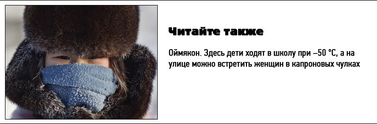 Абсолютный минимум температуры на Земле ( –89,2 °С) зафиксировали в Антарктиде на станции «Восток» 21 июля 1983 года. Но так как станция расположена на высоте 3488 м, то ее показания не могут считаться рекордными. Для сопоставления различных наблюдений их необходимо приводить к уровню моря. В таком случае самые низкие температуры оказываются в Якутии. Официально полюсом холода планеты признан Верхоянск (137 м над уровнем моря), где 5–8 февраля 1892 года наблюдалась температура –67,8 °С. Неофициально — село Оймякон (745 м), в котором серийные метеонаблюдения стали проводить значительно позже. В ряде источников приводятся данные, что в январе 1916 года температура здесь опускалась до –82 °С. Подробнее о том, где и когда фиксировались рекорды холода и почему одну и ту же температуру человек может воспринимать по-разному, читайте в статье «Моей Планеты» «Самая низкая температура на Земле».