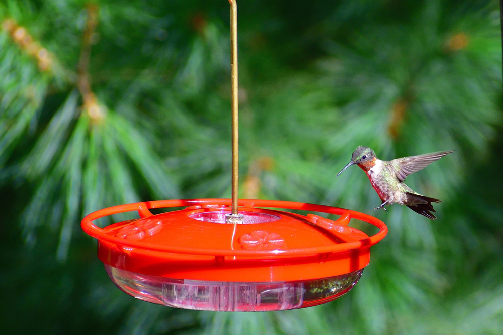 В отличие от многих животных и насекомых, колибри любят красный цвет. Поэтому в сладкую воду, приготовленную для птичек, часто добавляют безвредный краситель. Другой вариант — приобрести кормушку с уже имеющимися в дизайне деталями красного цвета.