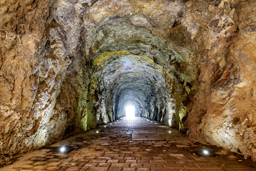 В начале XX века по предложению князя Голицына над пещерой построили мост, откуда специальный механизм опускал корзину со смельчаками, желающими осмотреть пещеру изнутри. И только в середине XIX века в скале пробит туннель длиной 58 м. С тех пор в пещеру можно пройти пешком.