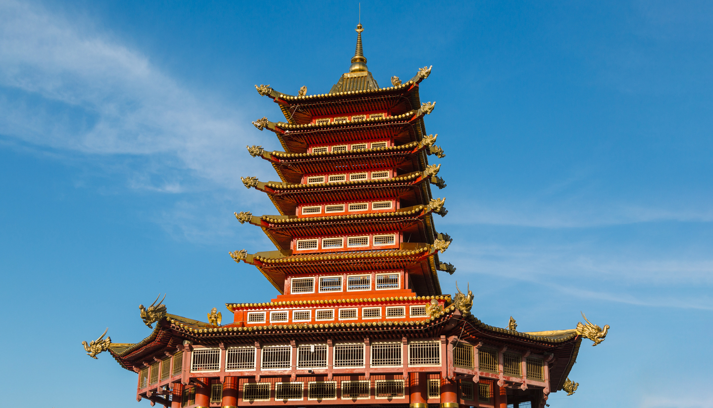 Пагода — одна из визитных карточек города. В паре километров впереди одна из главных точек притяжения туристов и горожан.