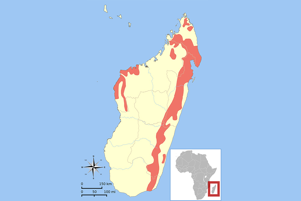 Встретить мадагаскарскую руконожку можно только на Мадагаскаре. Собственно, поэтому зверек и получил свое название (почему руконожка — тоже понятно, достаточно посмотреть на конечности).