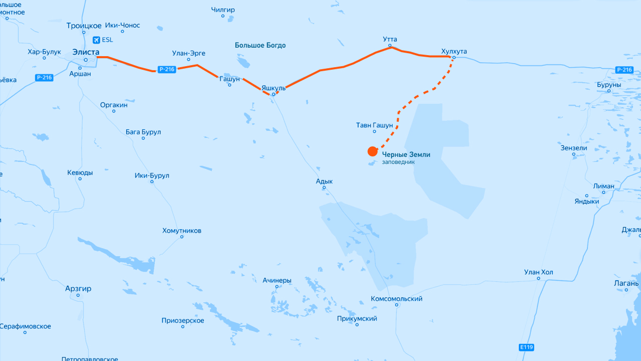 Как проехать. Сначала придется добраться до столицы Калмыкии — Элисты. Из Москвы сделать это можно на поезде, автобусе или автомобиле. Самый быстрый способ — самолет, всего три часа в пути. Но рейсов немного, так что можно долететь пересадкой в Сочи.