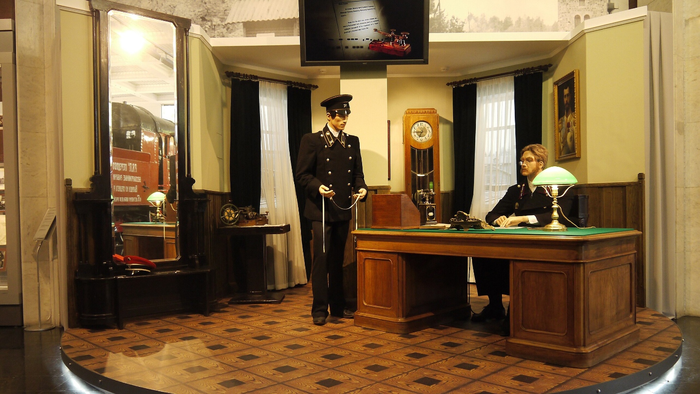 Любопытно также взглянуть на интерьер поездов: представлены купе 1 класса николаевских времен, кабинет начальника станции, антураж пригородной электрички, обыгранный в фильме «Москва слезам не верит». Развитие скоростного движения представлено действующим макетом скоростного поезда «Сапсан», связавшего города Санкт-Петербург, Москву и Нижний Новгород. Интереснее и познавательнее будет визит с экскурсией.