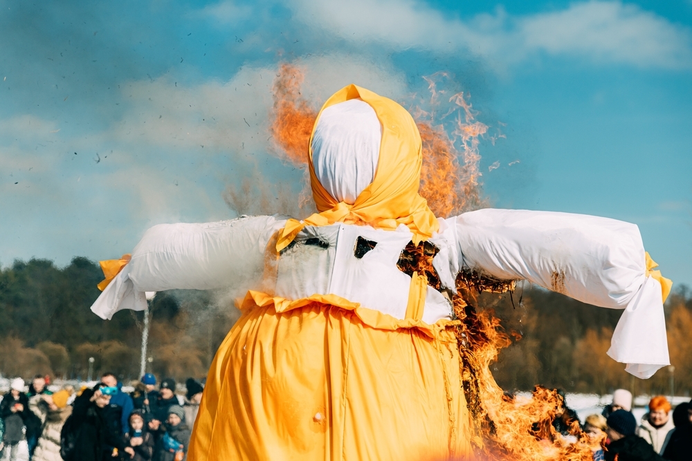 Главные традиции включают выпекание блинов, народные гуляния, игры и сжигание чучела зимы