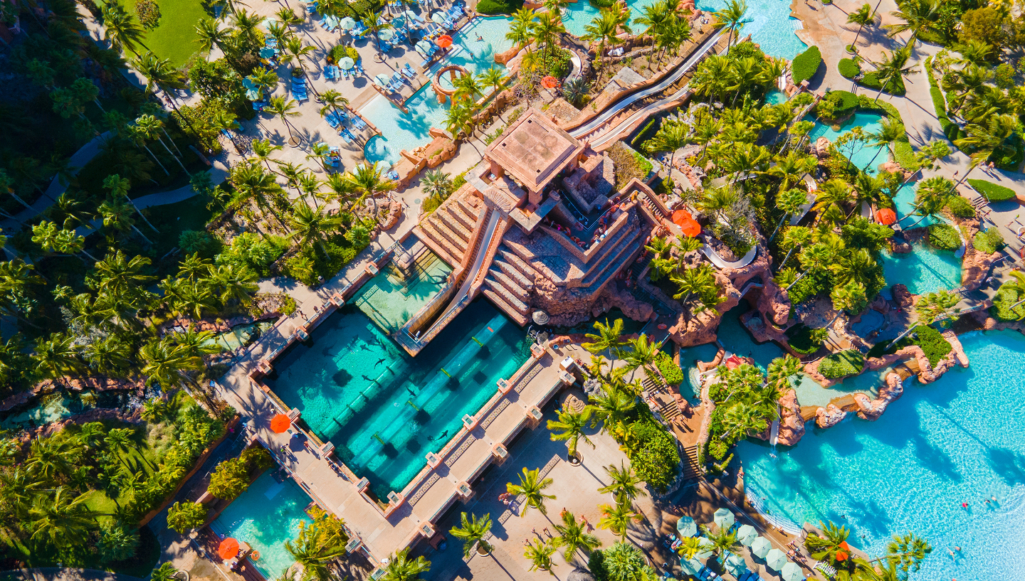 Аквапарк интегрирован в курорт Atlantis и разделен на тематические зоны.