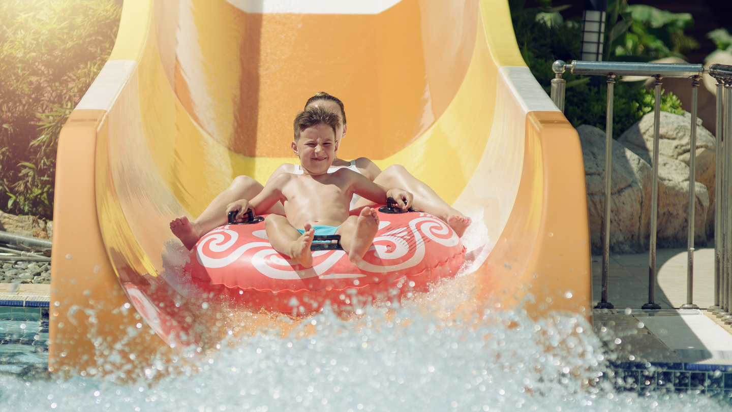 Здесь 49 горок, 8 бассейнов, 12 точек питания. Детские зоны оборудованы подогревом воды: «Акуленок» для малышей с гидротрубами и «Пиратский корабль» для подростков.