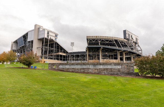 Другой крупный стадион, попавший в топ-10 самых вместительных спортивных арен планеты, — «Бивер Стэдиум». Его построили в 1960 году возле Пенсильванского государственного университета. Изначально стадион вмещал немногим более 45 000 человек, но его неоднократно реконструировали, и сейчас на арене могут одновременно присутствовать 106 572 зрителя. Стадион назван не в честь бобров, как можно было подумать, а в честь губернатора Пенсильвании и президента попечительского совета университета Джеймса А. Бивера.