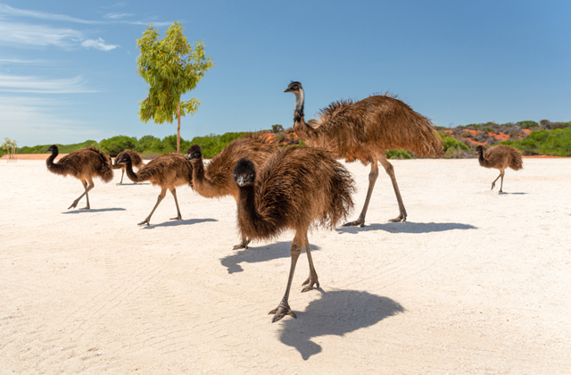 Эму является одной из крупнейших птиц Австралии и национальным символом страны: его высота — до 190 см, вес — до 55 кг. За сутки детеныш вырастает до 1 см и уже в шесть–семь месяцев находится на уровне глаз взрослого человека. Естественных врагов у эму почти нет, потому что птица хорошо видит, слышит и на расстоянии нескольких сотен метров может определить опасность и убежать от нее.