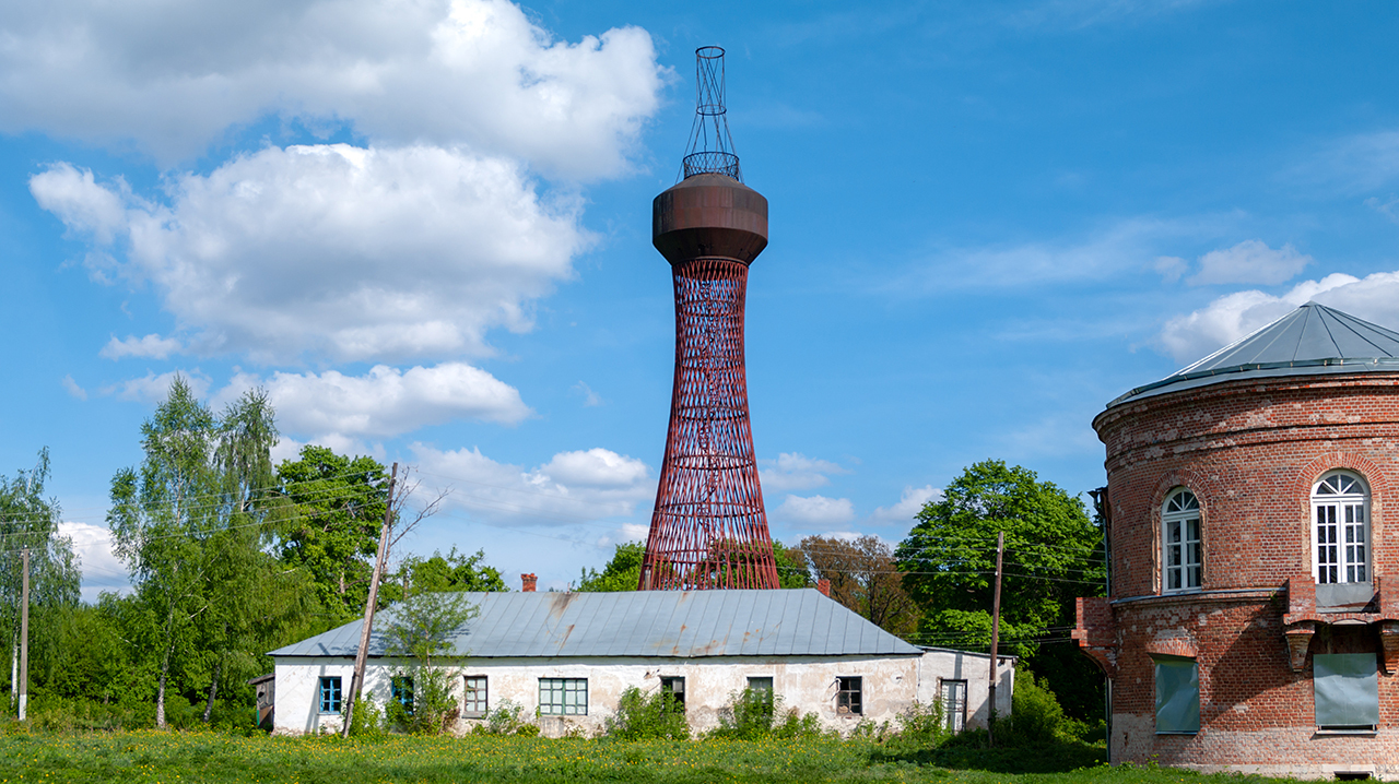 В этом живописном уголке на правом берегу Дона можно полюбоваться первой в мире гиперболоидной конструкцией. Именно ее Шухов представил на нижегородской выставке в 1896 году. Башня заинтересовала предпринимателя и мецената Юрия Нечаева-Мальцова (на его деньги был построен Пушкинский музей). Он купил ее и в разобранном виде отвез в Полибино — свое имение, где она стоит и по сей день.