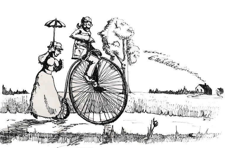 Развивайте ловкость. Велосипед «пенни-фартинг» к концу века стал так популярен, что англичанин Томас Стивенс даже отправился на нем в кругосветку. Управлять этим механизмом непросто: переднее колесо в пять раз больше заднего (как монеты пенни и фартинг), руль, педали и колесо соединены в жесткую конструкцию, а центр тяжести смещен вперед. Малейшая неровность, камушек или резкий поворот — и велосипедист вылетает из седла через руль.