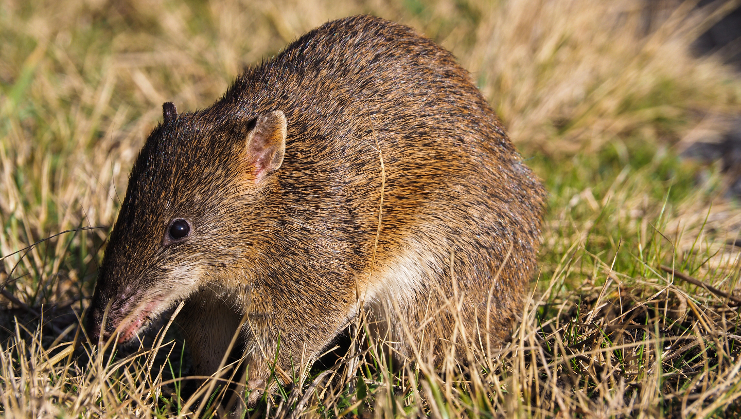 Бандикуты — уникальные сумчатые, сочетающие черты хищников и растительноядных. Их длинная заостренная морда и мощные когти идеальны для копания, а сросшиеся второй и третий пальцы на задних лапах (как у кенгуру) помогают очищать шерсть от паразитов. Эти зверьки передвигаются прыжками, отталкиваясь всеми четырьмя лапами, но, в отличие от кенгуру, приземляются на все конечности.