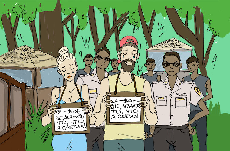 Молодая пара из Австралии отделалась не так легко. Супруги попытались вывезти из отеля, в котором жили, велосипед, но их вычислили. И австралийцы на себе испытали способ, которым борются с вороватыми туристами власти небольшого индонезийского острова Гили. Молодых людей в окружении полиции провели по улицам города с табличками, на которых было написано: «Я вор. Не делайте то, что я сделал», после чего выдворили с острова. Вряд ли после такого «марша позора» супруги захотят когда-нибудь на него вернуться...