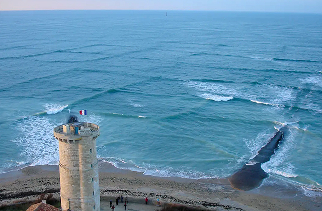 А чаще всего перекрестные волны наблюдают около французского острова Иль-де-Ре, который находится в зоне влияния двух волновых систем. Гигантскую «шахматную доску», «расчерченную» на море, почти не видно с берега, но стоит подняться на возвышенность, как взгляду открывается эпическое зрелище. Чтобы увидеть геометрический узор, который образуют волны, на остров ежегодно приезжают туристы со всего мира.