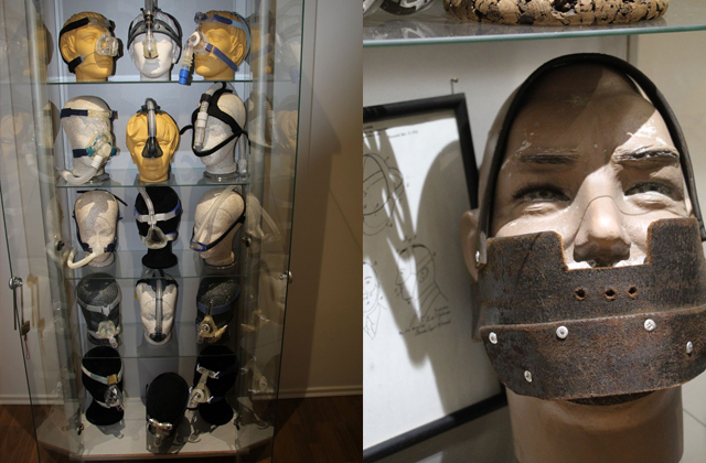 Например, там имеется «маска от храпа» — кожаные ремни, которыми раньше обматывали подбородок, чтобы держать рот закрытым. Другой предмет представляет собой полую трубочку, наполненную эфирными маслами. При поджигании масла попадали в дыхательные пути и препятствовали храпу. Правда, как с таким девайсом вообще можно было заснуть — непонятно.