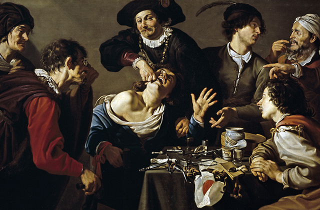 В Средневековье лучше не стало. Зубы лечили парикмахеры и брадобреи, чаще всего отворяя кровь. Помогло — хорошо, нет — в ход шли щипцы. Правда, со временем зубов могло вовсе не остаться, но и кариеса, соответственно, тоже.