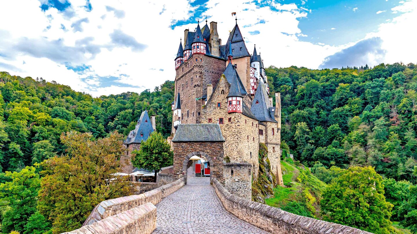 Замок Эльц прячется в живописной долине Мозеля. От парковки до входа в замок ведет дорожка через лес, что делает прогулку сказочной.