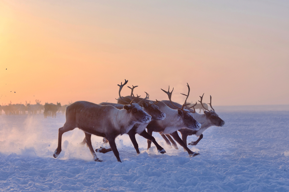 Выживать в суровых условиях Северного полюса животным также помогают 8-сантиметровая жировая прослойка и густой мех. Зубы мелкие, и когда олень растягивает рот, чтобы собрать языком остатки пищи, кажется, что он улыбается.