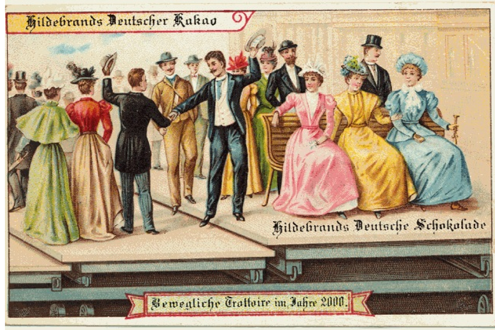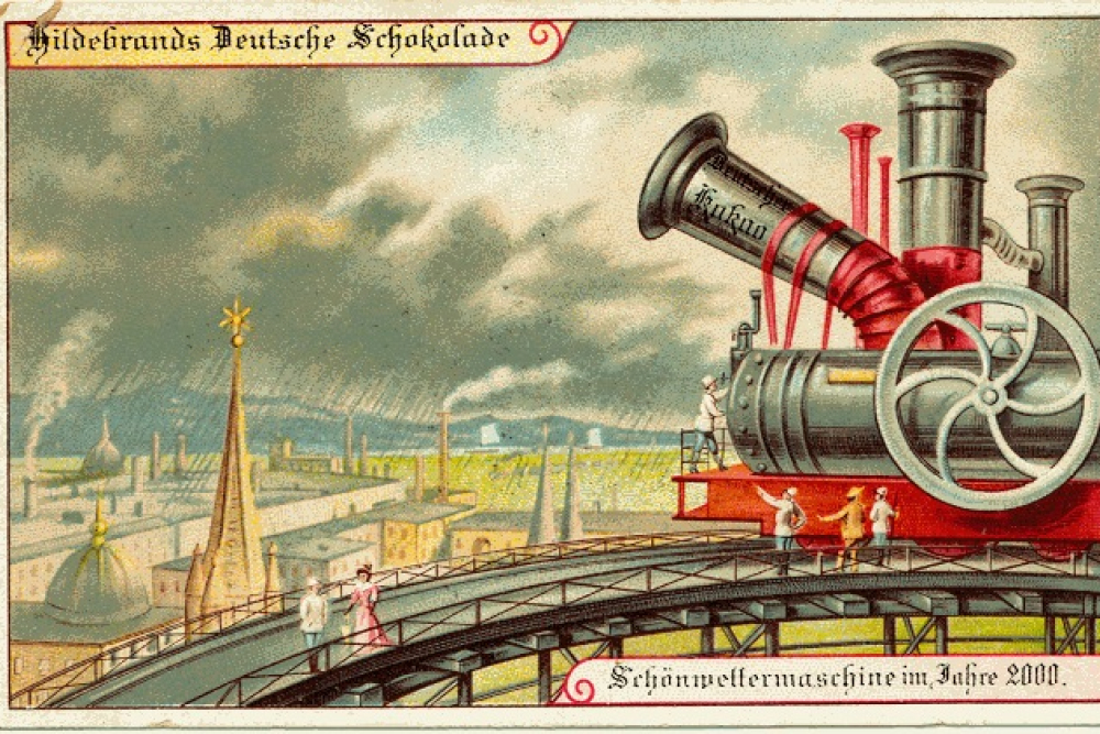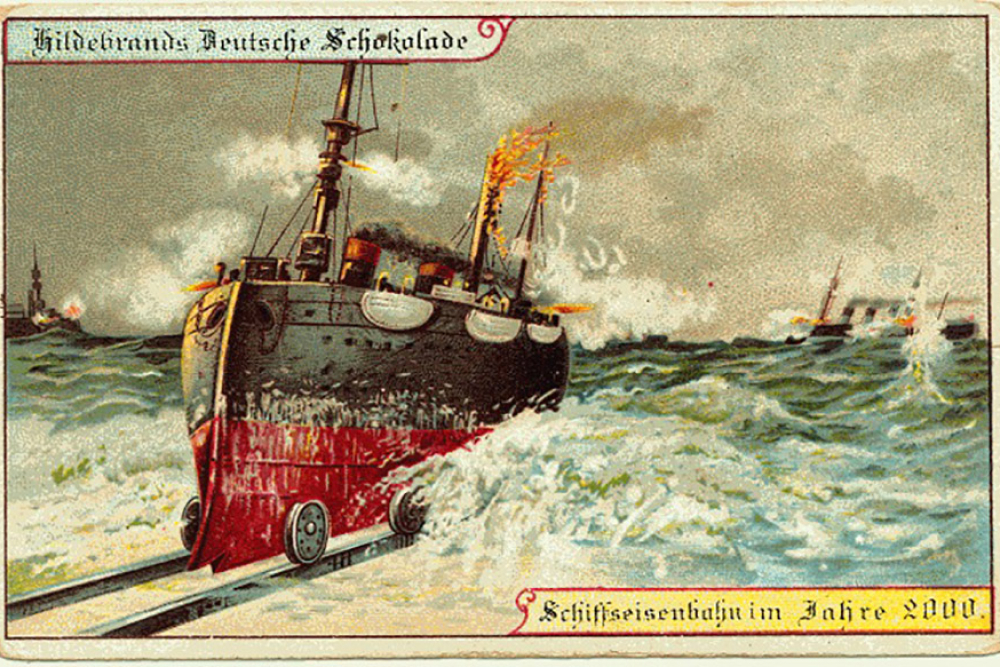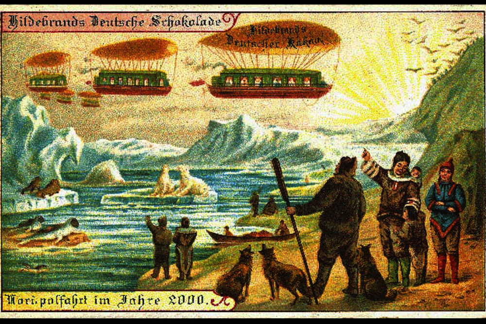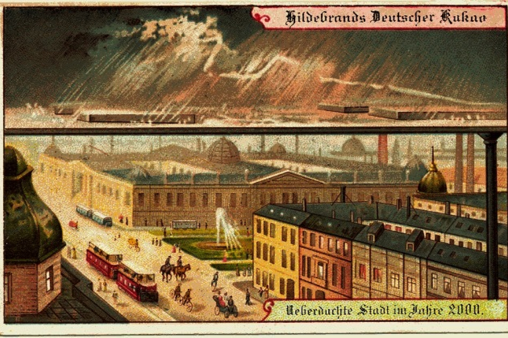 Свою серию футуристических открыток выпустила в 1900 году и Германия. 12 карточек были вложены в упаковки продукции шоколадной фабрики Theodor Hildebrand und Sohn. Эти рисунки, как и французские, посвящены 2000 году. Немцы также мечтают о неограниченной свободе для перемещений человека, о беспрепятственной передаче звука и изображения, что позволит смотреть прямую трансляцию любимого спектакля у себя дома, а еще о возможности управлять климатом с помощью «машин для хорошей погоды».