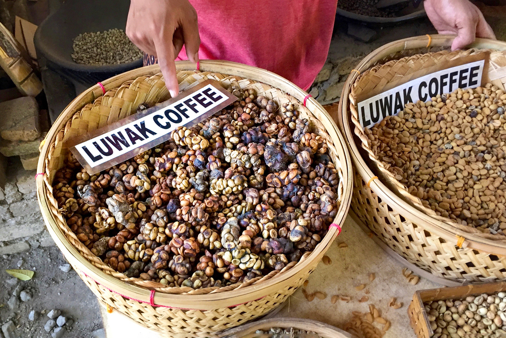 О том, что на острове есть зверек, который любит кофейные зерна, поедает их, но не переваривает до конца, островитяне, конечно же, знали. Вот и стали они собирать за циветтой, или мусангом (она же малайская пальмовая куница), то, что она оставляла после того, как вдоволь наестся кофейных вишен. Балийцы отбирали неповрежденные зубами и когтями зверька кофейные ягоды и готовили из них кофе. Колонизаторы же думали, что местные жители окончательно сошли с ума, поедая звериные какашки.
