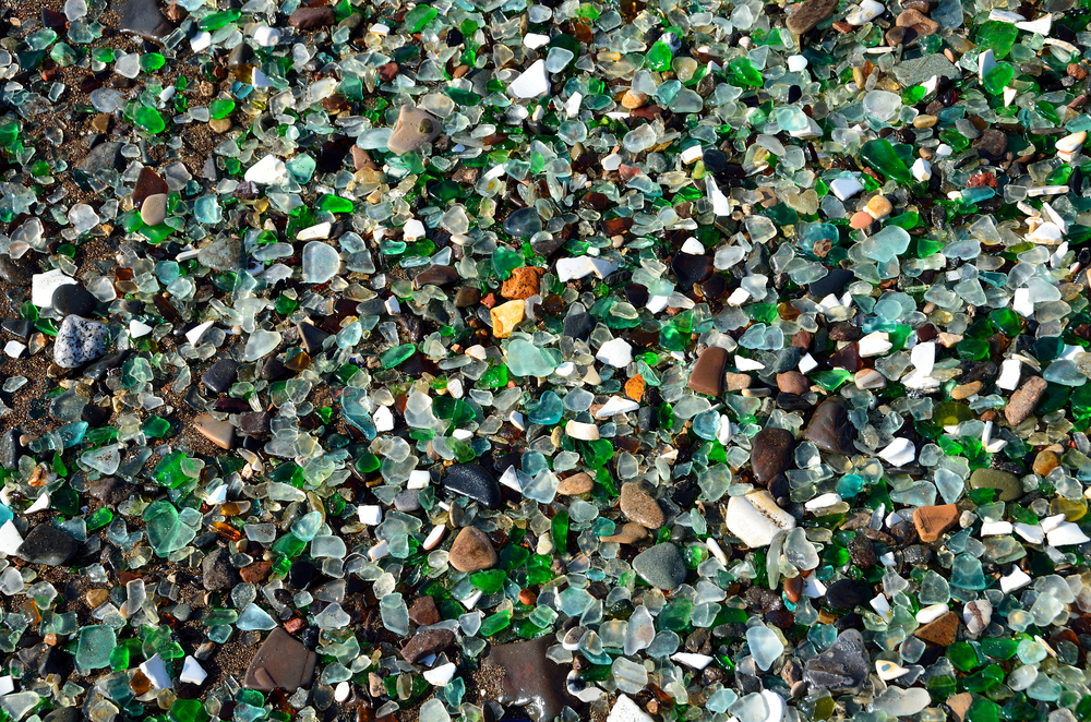 Стихийно возникшая на побережье свалка мусора привела к образованию экзотического места отдыха. «Горностай» (именно так называлась свалка) долгое время раздражал горожан. В 2011 году территорию наконец закрыли и спрятали под бетонным саркофагом. Но в игру вступило море. Постепенно на соседний морской участок стали выноситься осколки битых бутылок, обкатанные водой. Так и сформировалась Стеклянная бухта — Стеклянуха, как называют ее местные жители. 70% поверхности этого пляжа покрыты округлыми разноцветными стеклышками, так красиво переливающимися в лучах солнца и пене прибоя.
