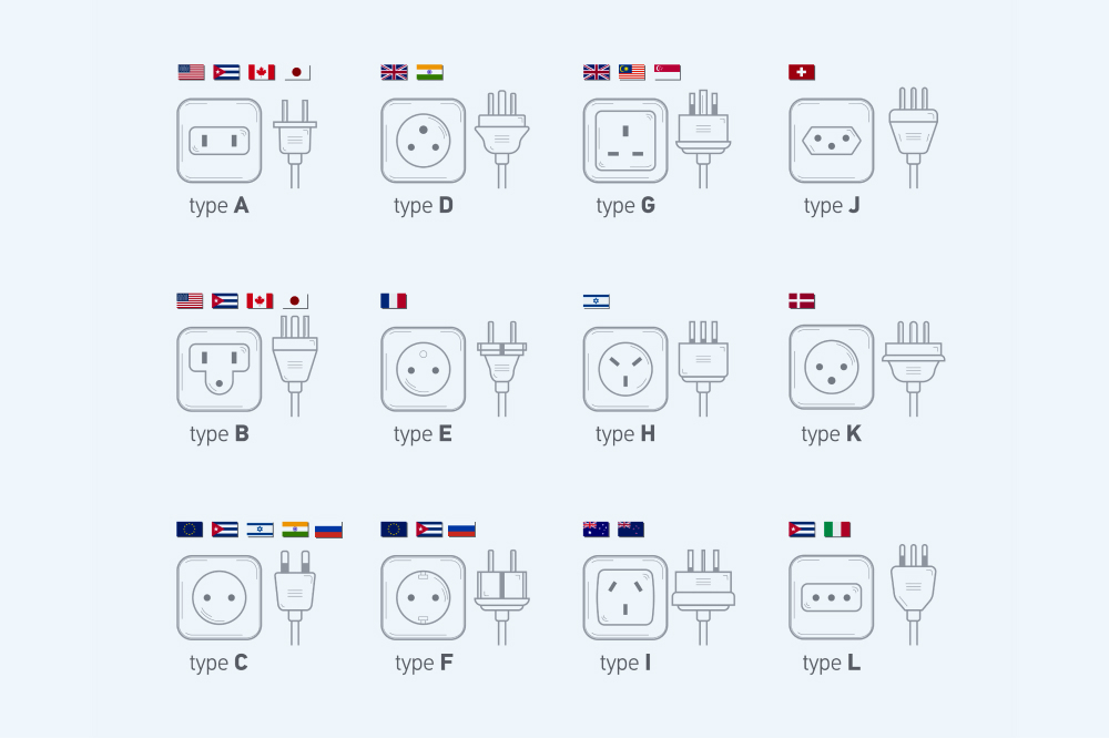 Например, универсальная евровилка (тип C) с двумя круглыми контактами благодаря гибким штырькам подходит для большинства европейских розеток, включая немецкие Schuko (тип F) и французские (тип E). Однако, даже если типы розеток совпадают, это не всегда решает проблему. В разных частях света напряжение и частота тока могут различаться.