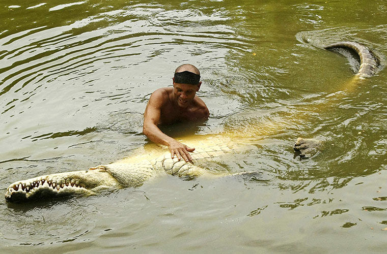 Сейчас я тренирую молодого крокодила. Пройдет несколько лет, прежде чем мы начнем выступать.