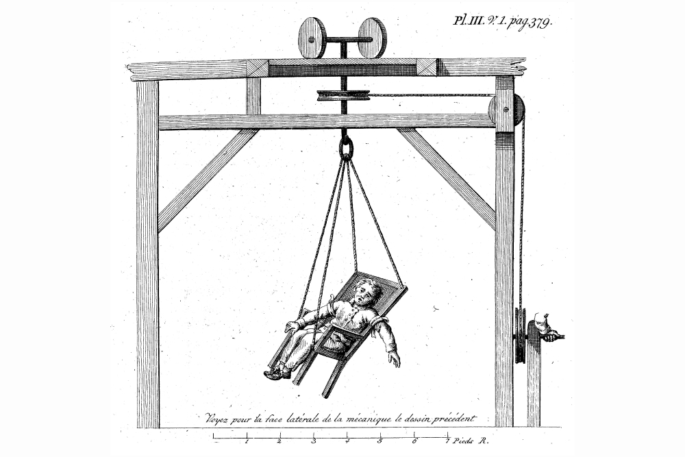 Какие только издевательства не обрушивались в Англии на головы тех, с чьими головами было не все в порядке. В начале XIX века их, например, качали на качелях. Этот метод изобрел врач по имени Джозеф Кокс. Качели Кокса представляли собой наклоненное кресло, подвешенное к потолку. И все бы ничего, если бы они не вращались — до 100 оборотов в минуту. Пациент должен был «усидеть» на них порядка двух минут (хотя скорость и время вращения регулировались на усмотрение врача). Цель считалась достигнутой, если несчастный мочился в штаны и его начинало рвать. Особо буйные пациенты после этой процедуры долго не могли прийти в себя, что уже объявлялось неплохим результатом.